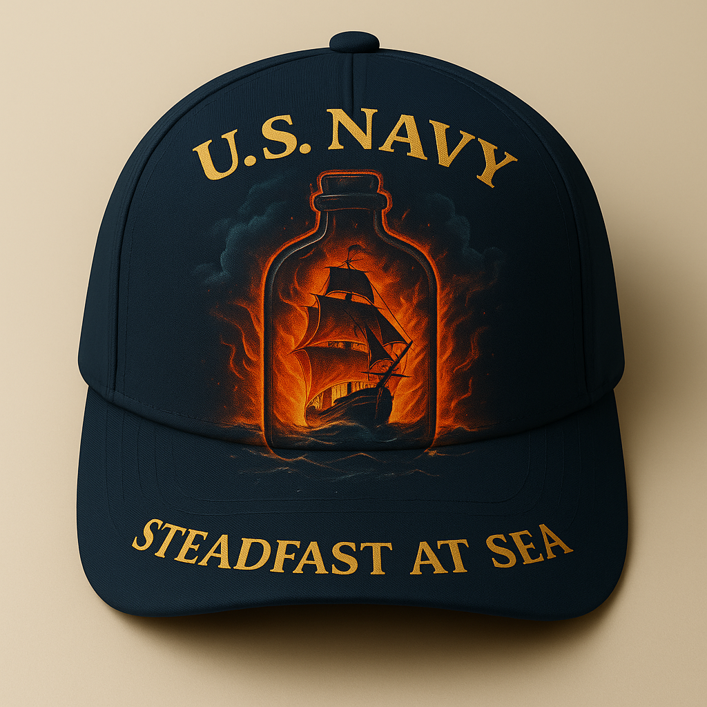 U.S. Navy Ship-in-a-Bottle Steadfast at Sea Cap