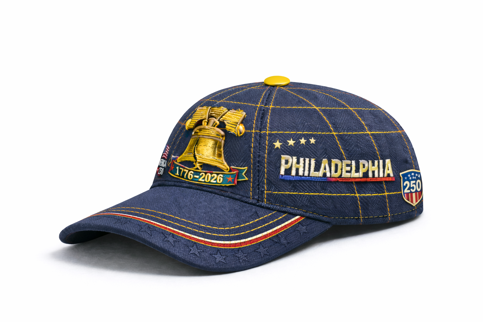 America 250th Anniversary Commemorative Baseball Cap – 1776–2026 Liberty Bell Philadelphia Embroidered Adjustable Hat