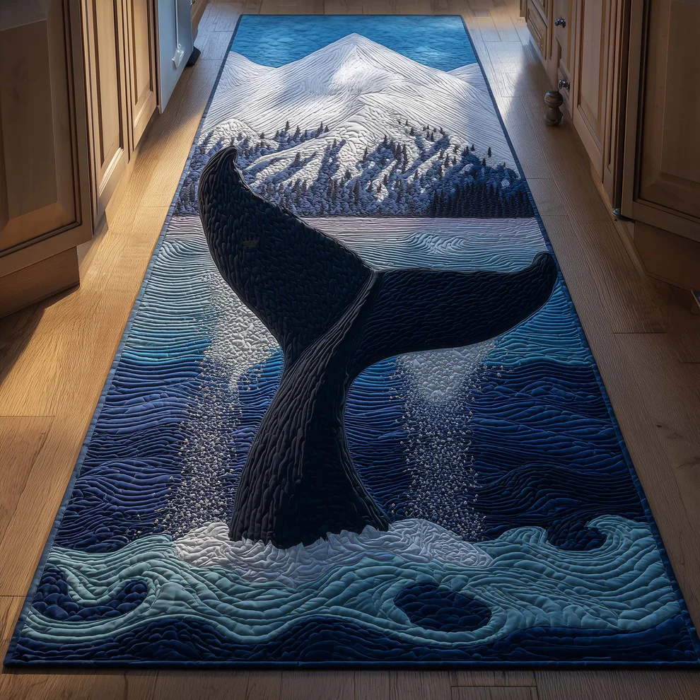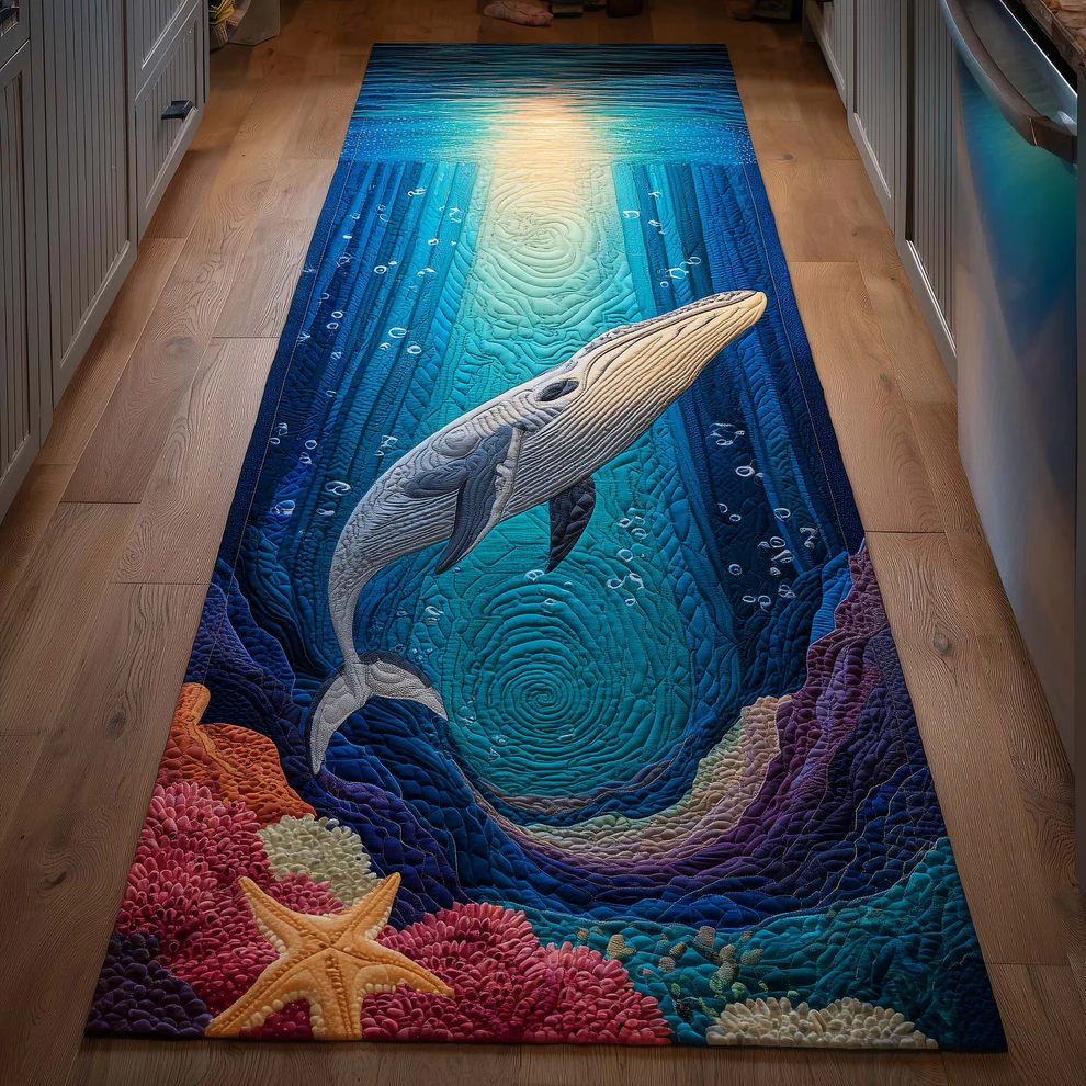 Whimsical Underwater Fairy Tale Style Turtle Drift & Golden Filigree Pattern Quilted Runner Rug with Magical Ocean Decor | Turtle