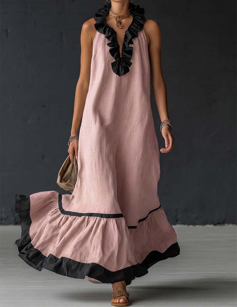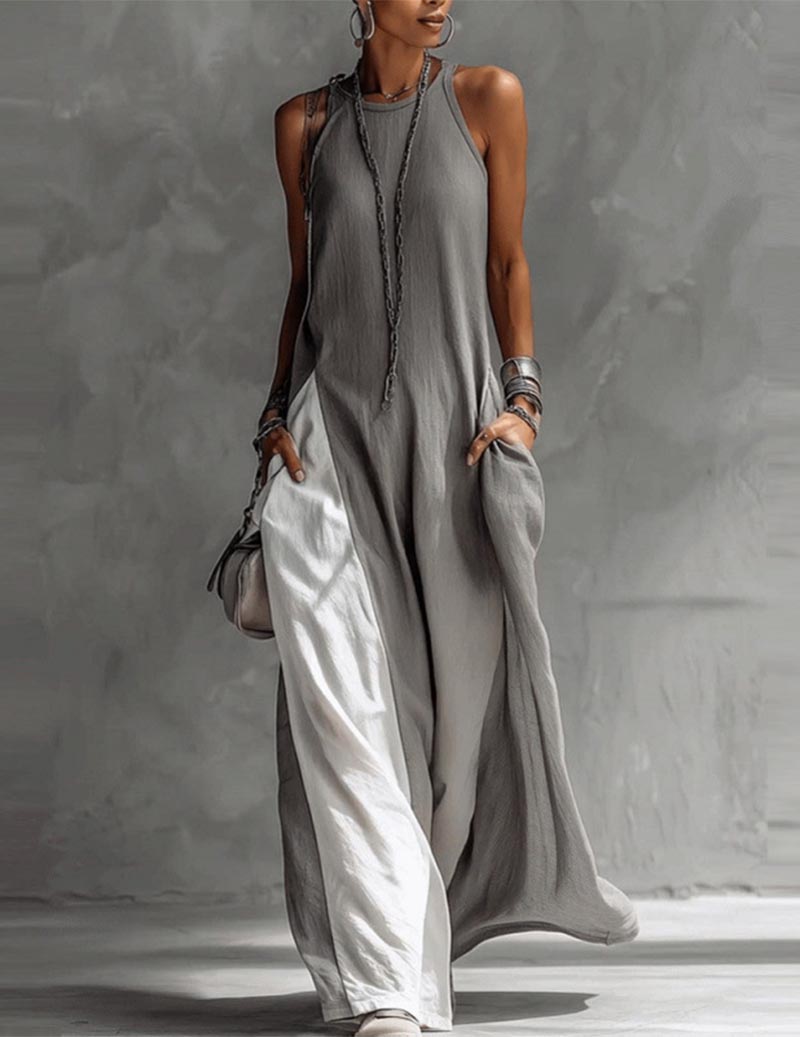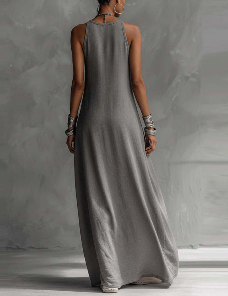 Women's Cotton And Linen Patchwork Single-breasted Stand-up Collar Long-sleeved Maxi Dress$45.99 USD$105.91 USD