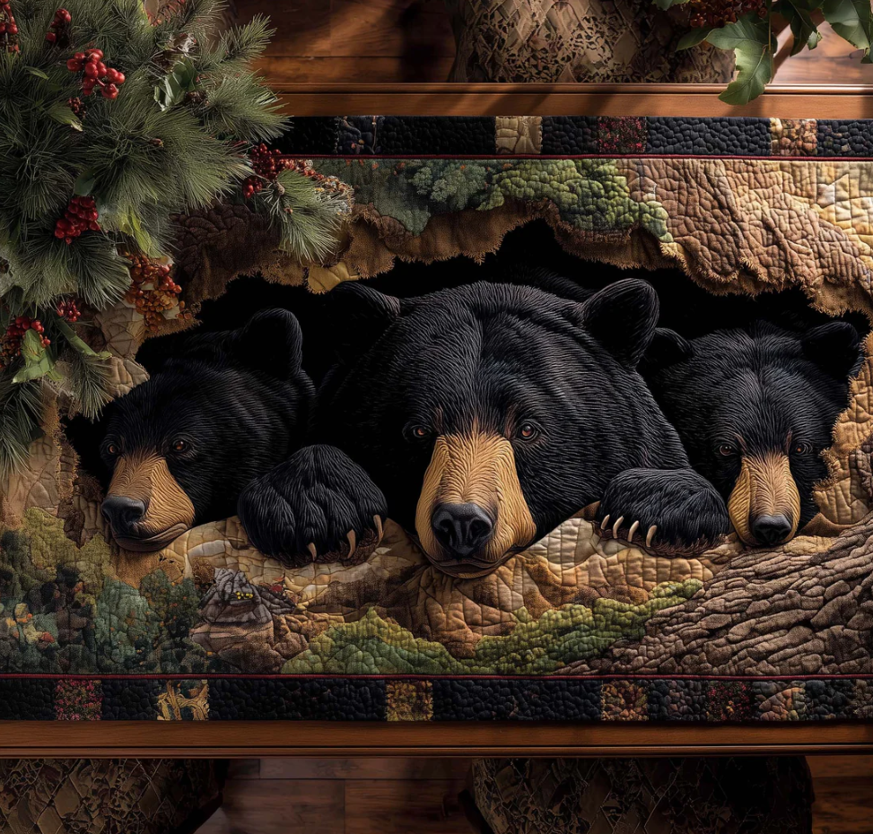 Bear Forest Spirit Quilted Table Runner Black Bear Pattern Dining Table Flag for Home Decor | bear