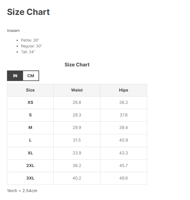 Size Chart (in)