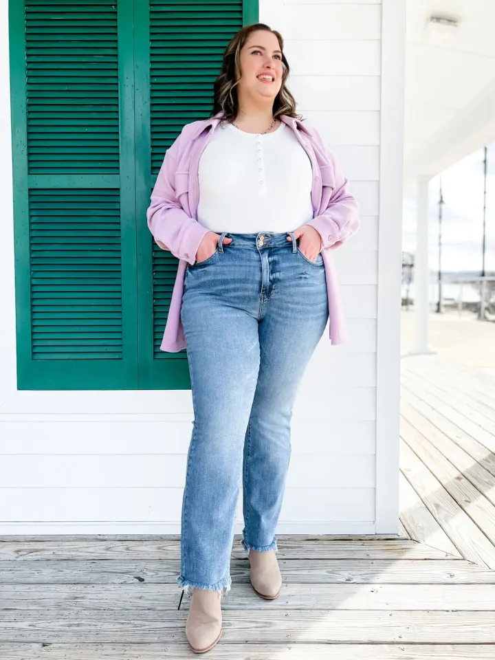 The best part about bootcut is it's flattering on ALL body styles! It gives a straight and narrow gal the appearance of an hourglass and it gives curvy gals a balanced figure. If you don't own bootcut - grab these and give them a try! You will be blown away by how flattering they fit!